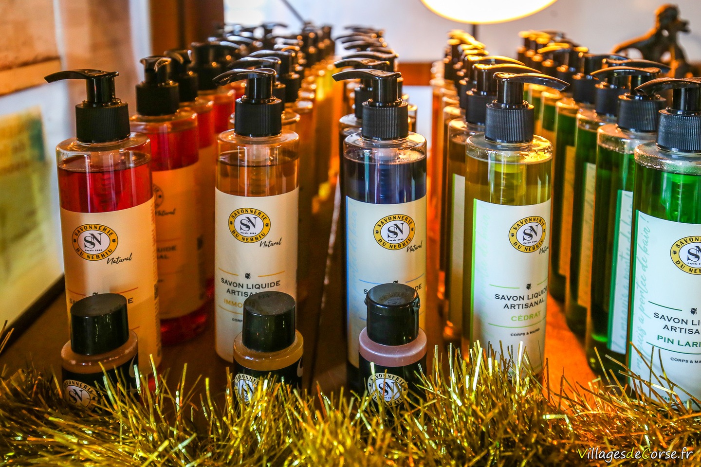La boutique propose également des produits d'autres marques corses, comme la Savonnerie du Nebbiu ou les huiles essentielles Essences Naturelles Corsica.