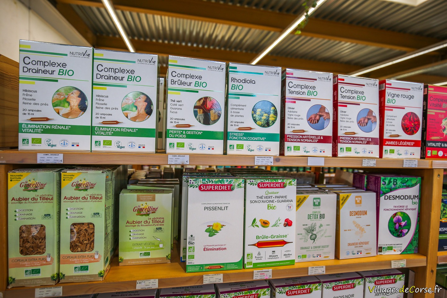 Vous trouverez sur votre gauche en entrant dans le magasin, un rayon complément alimentaire pour le bien-être, la santé, ou la perte de poids, notamment sous formes d'ampoules à diluer. Des produits des marques bio NutriVie, SuperDiet, Dietaroma, Fitoform.
