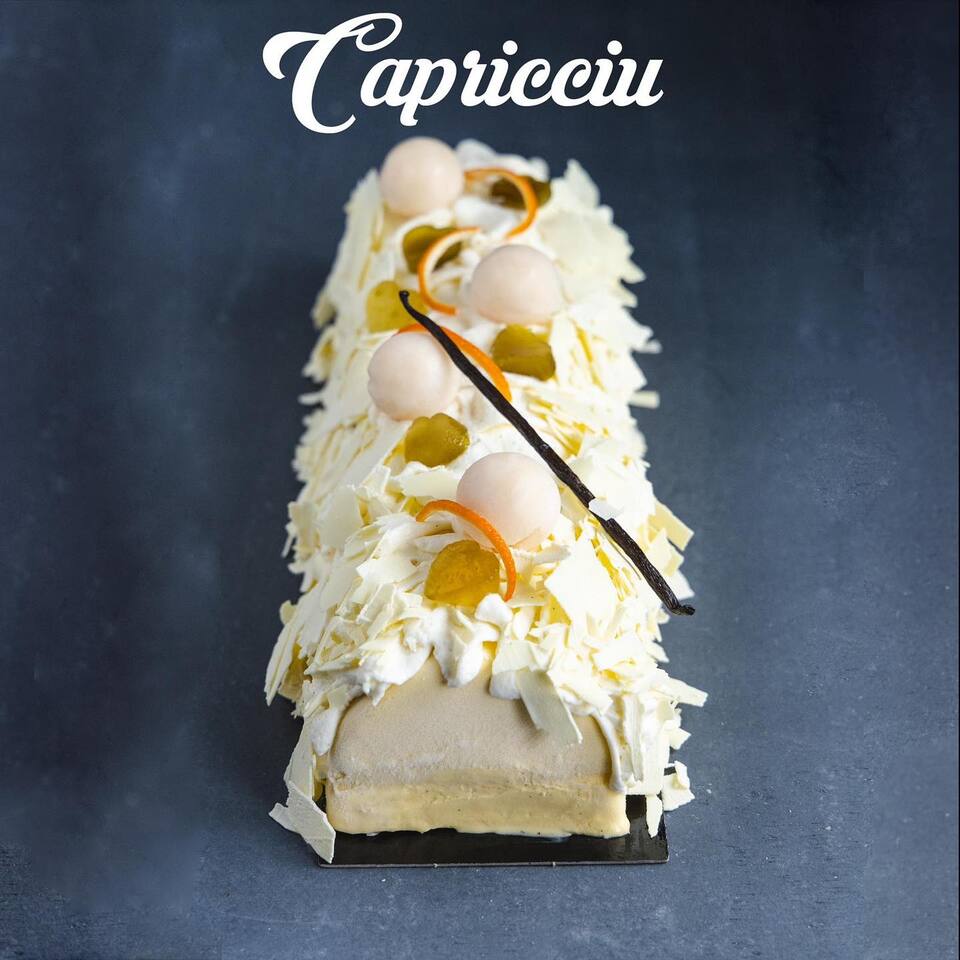 - Capricciu – Glace vanille de Madagascar, sorbet clémentine AOP Corse, chantilly vanille, génoise.